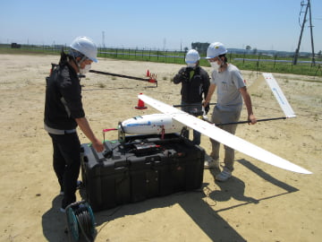 将来の原子力防災への対応として、長時間飛行用無人航空機の適用研究を行っております。原子力施設の事故を想定したOIL(Operational Intervention Level:運用上の介入レベル) に設定される発電所周辺の継続的なモニタリングのための性能を有することを確認し、適用の際の課題を抽出するための基礎性能試験データ取得作業などの請負業務を行っております。