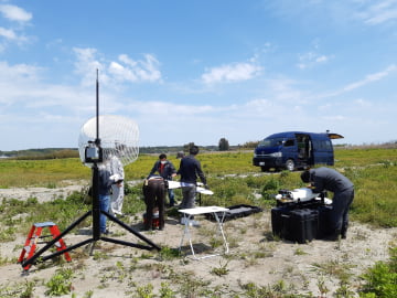 福島イノベーション・コースト構想推進機構施設など、広域飛行試験空域における監視装置の能力検証や空域探索レーダーの電波調査業務、洋上における海面反射等による電波通信状況の確認など、無人航空機を活用したデータ取得や記録、検証方法などをご提案し、電波通信の情報提供なども行っております。